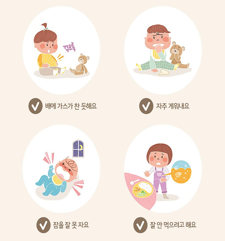 아기의 배에 가스가 차거나 잠을 잘 못자거나